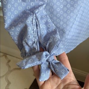 Worn one time. This is a super cute off the shoulder top. 3/4 in sleeves with bow tie closure.