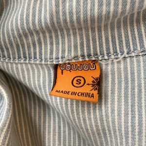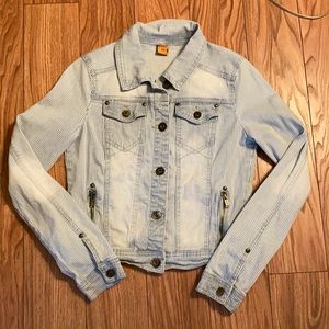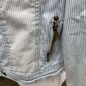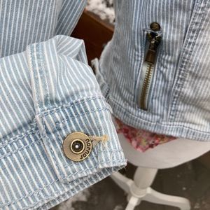 Jou Jou Stripped Zip Pocket Denim Jacket Size S