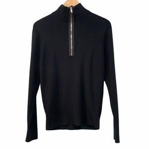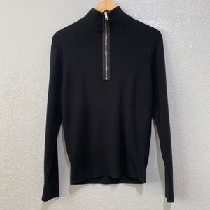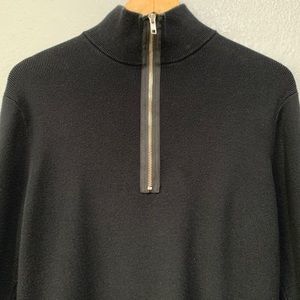 Calibrate Men's 1/4 Zip Pullover Knit Sweater in Solid Black. Exposed silver tone zipper.