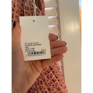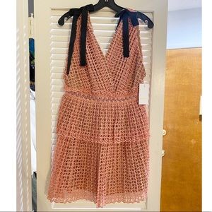 Self-Portrait Organza Cutwork Lace Mini Dress with Ribbon Shoulder Ties. Tiered bow-embellished guipure lace mini dress. Brand new with tags. Perfect dress for evening our, bridal shower, or any special occasion.