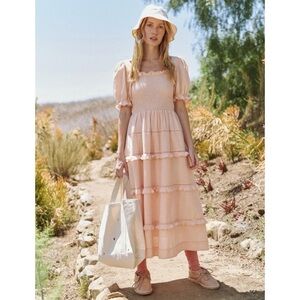 Your new go-to slip dress, this flowy frock features our best-selling Adella bralette at the top with boho crochet lace details and a light and airy skirt with a tiered hem.