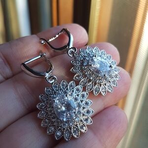 #Swarovski #Earrings #sterling #silver #heart #halo #dangling #wedding #prom #party #bridal #engagement #set #diamondshine