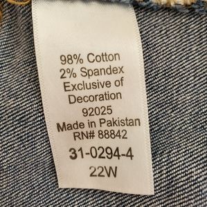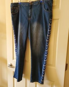 Beautiful pair of embroidered jeans from Woman Within. They have a embroidered pattern on the side of each leg. They also have 5-pockets and look to be straight leg. They are in very good pre-owned condition. Prefect to pair with your favorite top or sweater. Comes from a smoke free and cat 🐈 friendly home.