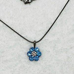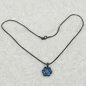 Vintage stunning blue crystal flower with clear small crystals necklace on a Smokey shiny chain with lobster claw closure