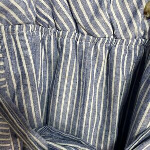 Step into effortless summer style with this Purple Snow Nautical Striped Linen Blend Shorts Romper in size Large. Featuring a classic navy and white stripe pattern, lightweight linen-blend fabric, and a flattering belted waist, this romper is perfect for warm-weather outings. The tailored fit and casual-chic design make it a versatile choice for beach days, brunch, or casual strolls. Please note, this romper has a minor discolorationābe sure to see pictures for details.