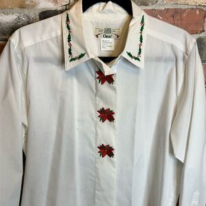 5 for $25đ„Size 12âOrvis Poinsettia Flower Long Sleeve White Button DownâShirt