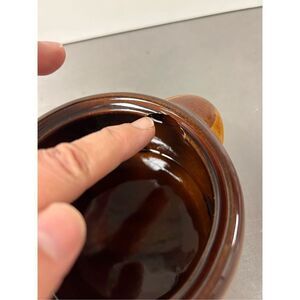 Vintage Mini Bean Pot and Lid with Wheat Design Ombre 1 side plain,ceramic. Oven proof. Stoneware bean pot, mini serving bowl. Great for French Onion Soup. Good condition. Inside there is a chip but not noticeable from outside. Please see the pictures.