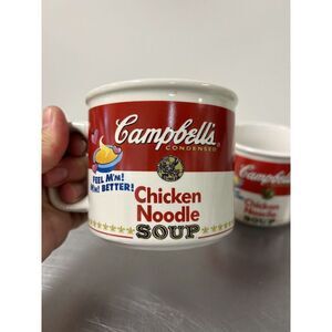 Campbells Chicken Noodle Soup White Tea Cup Coffee Mug Westwood 1997 Ceramic Vintage. Used good condition one of the mugs is a lighter red please see the pictures. Add some vintage charm, nostalgia to your kitchen with this Campbell's Chicken Noodle Soup tea cup coffee mug. The white and red color combination along with the original design makes it a perfect addition to any collection. The mug is made of ceramic and bears the Campbell's branding at the bottom.