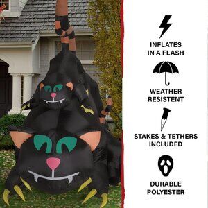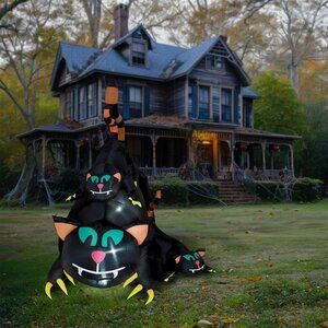 * Festive Inflatable: Prepare to step up your decor game with this eye-catching black cat decoration, sure to entice trick-or-treaters; Perfect for front lawn, backyard, or any outdoor space