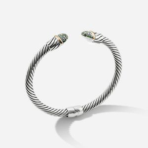 5mm Braided Silver & 18k Gold Cable Bracelet with Green Diamond and Middle Clasp
