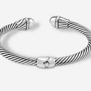 5mm Braided Silver & 18k Gold Cable Bracelet with Red Diamonds and Middle Clasp