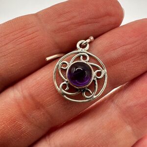 Stamped 925 on the back, there's a 5mm amethyst cabochon in the front.