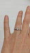Beautifully cut 5mm .5 ct moissanite engagement ring, size 4.5, color D, clarity VVS1, round brilliant, 3mm side stones, pear side detail, .925 sterling silver, with gray ring box