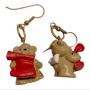 5 pair fun earrings-carrot-butterflies-easteregg-sheepdog-teddy bear-ladybug pin