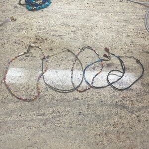 Fun 5-piece necklace bundle, each featuring delicate seed beads in multicolor patterns, perfect for layering or wearing solo, lightweight and easy to style, adjustable chain closures, great for boho, beach, festival, or everyday casual looks. May be handmade. Includes 5 necklaces as pictured.
