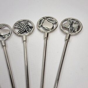 5pc Godinger 7" Silverplate Vintage Drink Stirrers Swizzle Sticks Picks Fruit