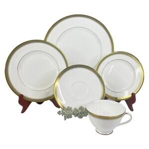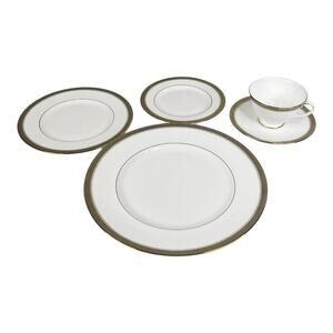 A Five (5) Piece Place setting ROYAL DOULTON Clarendon H4993 Bone China - Made In England With Dinner Plate, Dessert Plate, Bread & Butter Plate, Cup & Saucer Set!