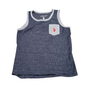1 us polo assn tank striped in grey and navy with red embroidery logo