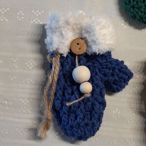 5 pc handmade ornaments to hang on your tree or use as a gift tag for a special gift. Very cute assortment of stockings and mittens all hand made. Tuck in a candy cane or note for that special someone. Each is a little different.