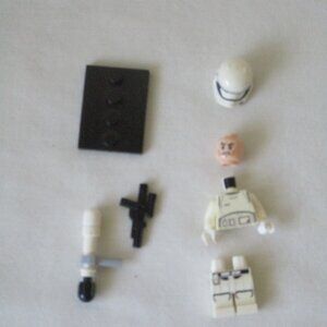 First Order Stormtrooper, with helmet, baton, blaster and glossy black stand ( he has a stain on the back of his legs)