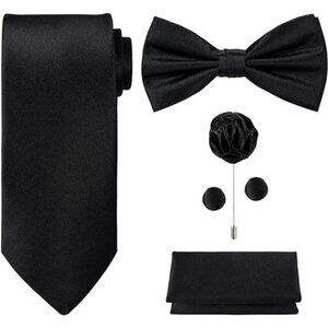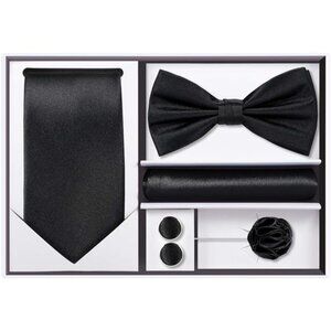 *❤️ [PACKAGE CONTENT] Woven Necktie + Satin Bow Tie + Pocket Square + Cufflinks + Lapel(or Tie Clip) + Premium Gift Box. Purchase our 5PCS TIE SET and SAVE more than $18. (Tie $9.99 + Bow Tie $5.99 + Hanky $3.99 + Cufflinks $5.50 + Lapel or Tie Clip $9.95 = $35.42 for 5 items)