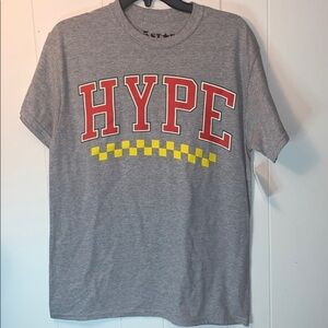 Gray Men’s heathered Graphic spell out HYPE Men’s size medium five star 90% cotton hype graphic T-shirt