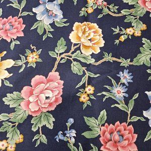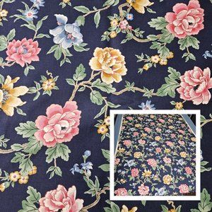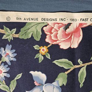 5th Avenue Upholstery Tapestry Fabric Material Floral Dark Blue Pink White 48" Wide With 1.75" Selvage By the Yard 1983