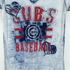 5th & Ocean Women’s Chicago Cubs Baseball Burnout V-Neck Short Sleeve Tee Small