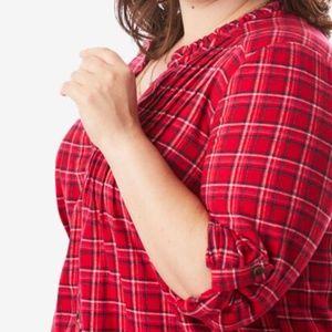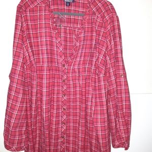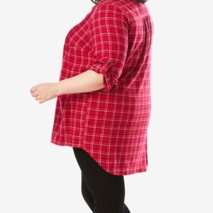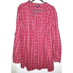 5x Plaid Flannel Pintuck Tunic Hi-Low Plus Size 32w red