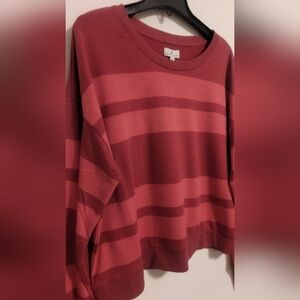 A soft top in two tones of horizontal red stripes, round neck and cuffs make this sweater a perfect one for the season.
