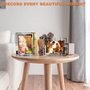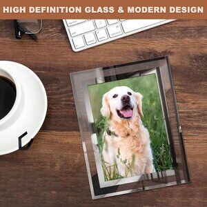 HD Glass picture Frames - The package comes with 4 picture frames, a piece of glass cleaning cloth . The picture frames display 5x7 photos without mat, and the HD glass surface makes your photos look very clear.