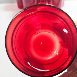 Add some vintage charm to your dining collection with this set of Anchor Hocking Royal Ruby Glasses. With a rich ruby color and gold stripes, the Depression glasses where made from 1934 - 1950s. They are ideal for those who appreciate the aesthetic appeal of metallic accents and lavish vintage glassware.
