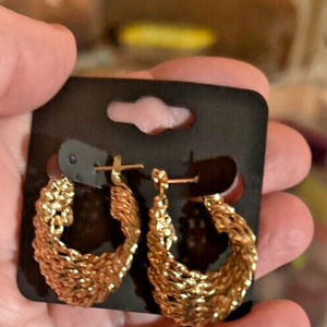 Elevate your jewelry collection with these stunning Vintage 6 Braided Strand Twisted Gold Tone Earrings. These earrings are perfect for any occasion, whether a birthday, wedding or Valentine's Day. The intricate braided design adds a touch of elegance to any outfit, while the dangle/drop style adds a modern flair. Measuring 1.25 inches in length, these earrings are suitable for any ear lobe. The gold color of these earrings adds a touch of luxury, making them the perfect gift for Mother's Day, Christmas, and even Christenings. The vintage style gives these earrings a unique charm that is hard to find. Add them to your vintage and antique jewelry collection for a timeless look.
