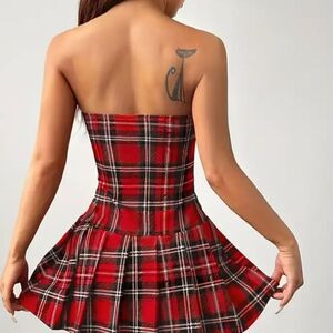💲6️⃣ Bundle Little Red Plaid Pleat Dress Cosplay Dress-Up Sexy Bamdeau Mini
