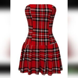 Stylish sweet & swxu red plaid dress mini with pleated skirt with black and white red plaid accents. Perfect for going out, party girl, sexy time, hot date.