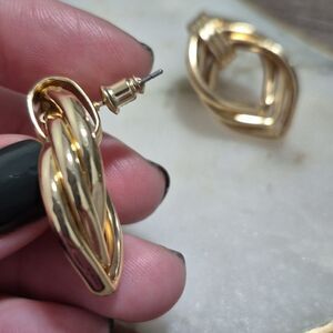 💲6️⃣ Bundled ✔️Elegant Gold-Tone Teardrop Shape Chinlink Hoop Twisted Earrings