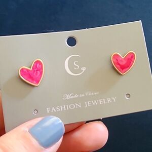 tags- earrings, stud hearts, gold heart jewelry, pink hearts jewelry, fun, dainty, simple, plain, modest, conservative,Festive, fun, love, valentines day, date night gifts💖