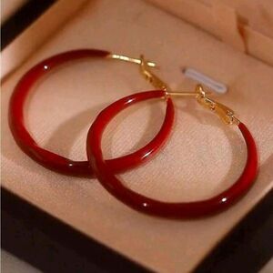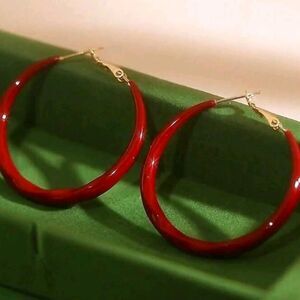 💲6️⃣ Bundled ✔️Red Resin 2" Hoop Thin Earrings Gifts Jewelry Soho Hippie Vibes
