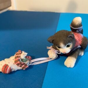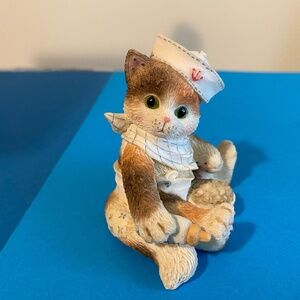 Six different Calico Kittens Figurines dated from 1995 to 1998 on the bottom. There are two Christmas kitties, one Thanksgiving kitty, one nautical kitty, and one shorthair tabby. All are in excellent condition.