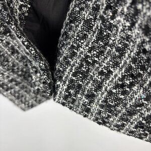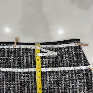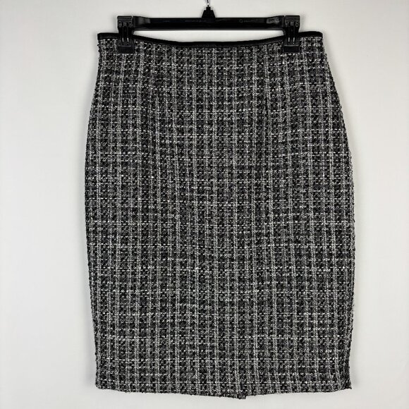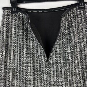 This is a Calvin Klein black and white tweed pencil skirt that fits above the knee, in US women's size 6.