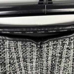 6 Calvin Klein Pencil Skirt Tweed Sequin Above Knee Mini Lined Faux Leather Zip