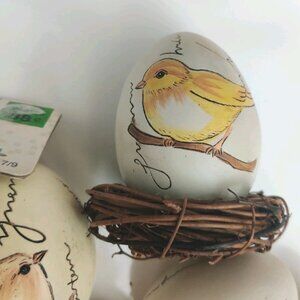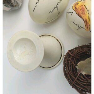6 Ceramic Painted Bird Egg in Nest Artisan Farmhouse Decor 3.5" For Craft DIY
