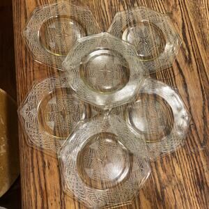 6 Depression Glass L.E. SMITH Yellow ROMANESQUE OCTAGON 7.5” PLATES EXCELLENT!