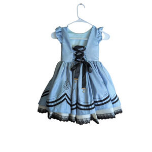 EUC Dollcake Gleam In The Light dress. Shimmery light blue with black lace accent on the bodice. Beautiful black embroidery on the skirt. Black lace trim on the white underskirt. Corset back with side zipper. Fully lined. Minimal signs of wear