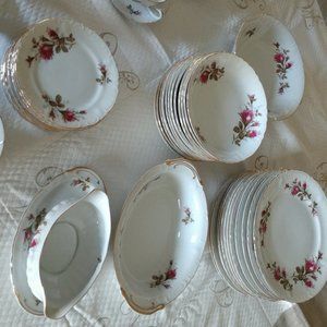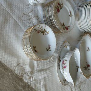 In addition to the Round Vegetable Bowl, I have an Oval Vegetable serving bowl, a 4.25" Oval Platter, 12 Dinner Plates, 8 Dessert/Fruit/Sauce/"Finger" Bowls,12 coupe style Soup Plates, 11 Dessert/Bread/Small Salad Plates,, a 14.25" Oval Platter, as well as a Chop Plate Platter, a Gravy Boat with Under plate, , 11 Teacups & 12 saucers, a Teapot, Sugar Bowl (no lid),& Creamer, and a Salt & Pepper set to match! I've not discovered any chips, flakes, or crazing but will fly speck again prior to shipping! Please let's chat about what you're interested in! Thanks for looking & following my closet!