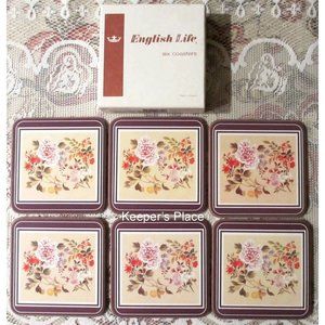 6 English Life "Trellis" Floral Coasters With Box