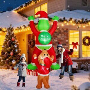 ⚡6 FT Christmas Inflatables Climbing Santa Claus with Dog Outdoor Decorations