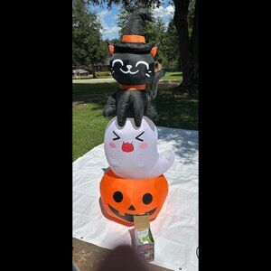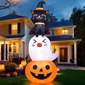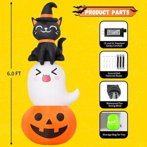 6 FT Pumpkin Ghost Cat Halloween Blow Up Inflatable Decoration with LED Light