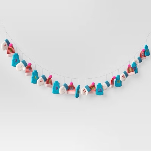 6' Fabric Mitten Hat Vest Christmas Advent Calendar Garland White/Blue/Red nwt