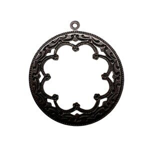6 Filigree Flower Frame Circle Pendant Finding Stamping Dark Antique Bronze Tone